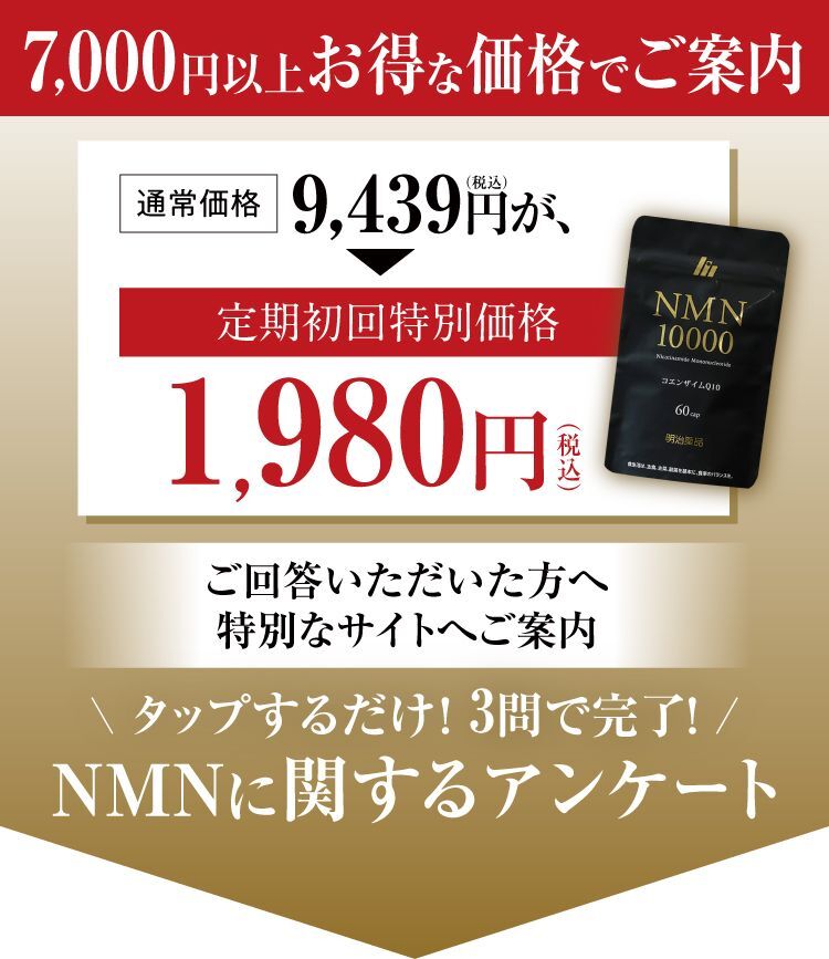 内側からのエイジングケアにNMN10000。
